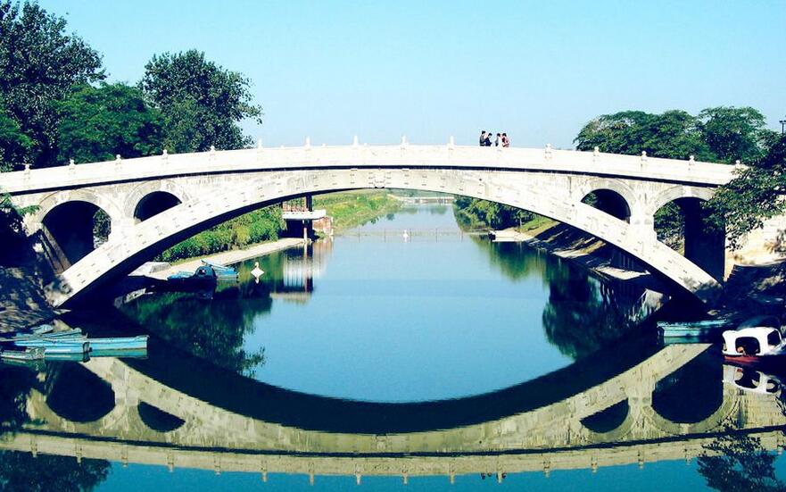 趙州橋原名安濟橋,俗稱大石橋,建于隋煬帝大業年間(595~605年),至今已有1400年的歷史,是當今世界上最古老的石拱橋。石拱橋是用石塊拼砌成彎曲的拱作為橋身,上面修成平坦的橋面,以行車走人。而趙州橋的特點是“敞肩式”,即在大拱的兩肩上再辟小拱,是石拱橋結構中最先進的一種。她是世界上現存年代最久、單孔跨度最大、保存最完整的一座敞肩型石拱橋,被世人公認為“天下第一橋”。趙州橋正名安濟橋,俗稱大石橋。其設計者是隋朝匠師李春。趙州橋是正常的交通運輸橋,它的橋身弧線優美,遠眺猶如蒼龍飛駕,又似長虹飲澗。尤其具有藝術特色的是欄板以及望栓上的浮雕。充分顯示了隋代矯健、俊逸、渾厚、嚴整的石雕風貌。整個大橋堪稱一件精美的藝術珍品,稱得上是隋唐時代石雕藝術的精品。